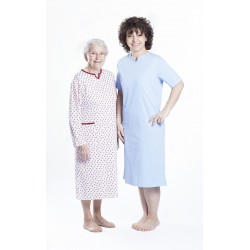 Vêtement conçu pour les personnes désorientées et qui se déshabillent.La patiente ne peut accéder à la fermeture par fines pressions dans le dos.Tailles : du 34/36 au 62/64 Modèle : manches courtes ou longues.Tricot : jersey 140 gr.Matière : 100% coton. Lavage unis : 90°C.Lavage imprimés : 40°C.
